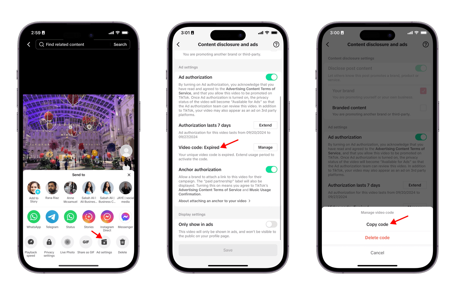 Once you have shortlisted the creators whose content you want to use for your TikTok Spark ads, obtain authorization by requesting an authorization code (a unique code that enables you to access the video for promotional purposes).